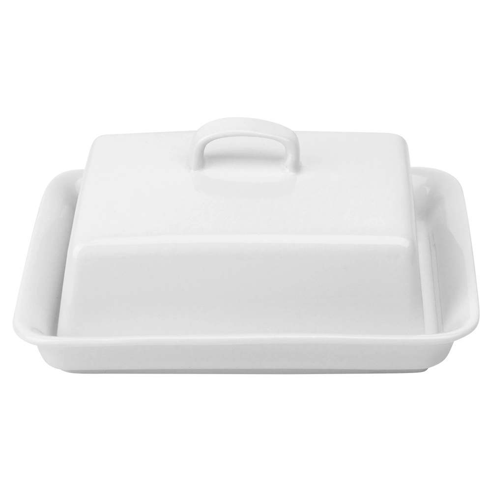 Entdecken Sie die zeitlose weiße Butterdose aus hochwertiger Keramik, die Butter länger frisch und geschützt hält. Die klassische Form passt zu jedem Tafelservice und dank des Deckels mit praktischem Griff lässt sich die Butter zu Hause wie auch beim Servieren für Gäste bequem handhaben.