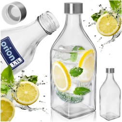 Elegante Glasflasche mit einem Volumen von 1,1 l und metallenem Schraubverschluss sowie Silikondichtung für maximale Auslaufsicherheit. Ideal für Wasser, Limonade, Säfte und hausgemachte Getränke, perfekt für den täglichen Gebrauch und zum Servieren am Tisch. Spülmaschinengeeignet für einfache Reinigung.