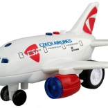 Entdecken Sie den Spielspaß mit dem CSA-Flugzeug, das dank bekannter Bordansagen wie „Willkommen an Bord …“, „Hier spricht Ihr Kapitän …“ oder „Meine Damen und Herren, bleiben Sie bitte sitzen …“ echte Kabinenatmosphäre vermittelt. Mit Lichteffekten und Schwungradantrieb wird das Spiel dynamisch und mitreißend.