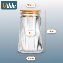 Praktische und designstarke Vorratsdose für den täglichen Einsatz in der Küche. Borosilikatglas widersteht Temperaturschwankungen, und die gerippte Oberfläche sorgt für einen modernen Look und besseren Halt. Der Bambusdeckel mit Silikondichtung verschließt den Behälter zuverlässig, sodass Duft und Knusprigkeit der Zutaten länger erhalten bleiben.
