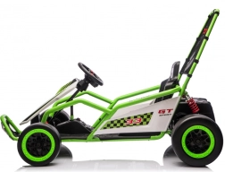Das Gokart TORNADO ist die ideale Wahl für kleine Rennfahrer, die Action lieben. Das Duo aus kräftigen 2×150-W-Motoren, betrieben mit einem 24-V-(7-Ah-)Akku, sorgt für gleichmäßige Kraftentfaltung, zwei wählbare Geschwindigkeiten und eine einfache Steuerung vorwärts/rückwärts. Vordere, gedämpfte EVA-Räder garantieren Grip und leisen Lauf, während spezielle hintere Kunststoffräder leichtes Driften auf geeignetem Untergrund ermöglichen.