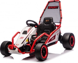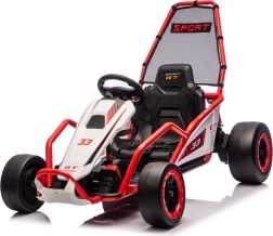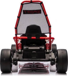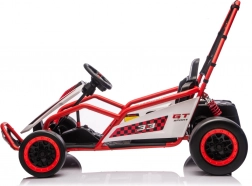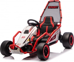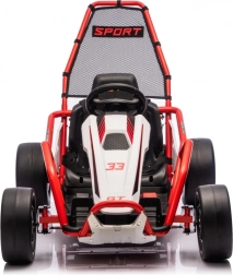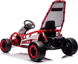 Die robuste Konstruktion mit zwei hinten verstellbaren Stoßdämpfern erhöht den Komfort und die Kontrolle auf ebenen Flächen. Die umfangreiche Ausstattung umfasst ein Audio-Panel mit MP3, USB und Bluetooth, integrierte Melodien, Hupe und Batteriestatusanzeige. Der Sportsitz mit Gurten hält den Fahrer sicher im Sitz.
