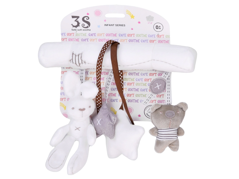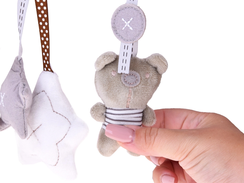 Eine kurze Melodie beim Drücken des Häschens, eine Quietsche im weißen Stern und eine Rassel im Bären stimulieren sanft das Gehör und fördern das Verständnis von Ursache und Wirkung.