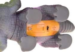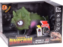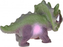 Der interaktive Gummi-Triceratops ist das ideale Spielzeug für kleine Fans der prähistorischen Welt. Dank der texturierten, hautähnlichen Oberfläche, des markanten Nackenschilds mit Stacheln und des robusten Körpers wirkt er sehr realistisch und fördert kreatives, fantasievolles Spielen.