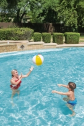 Genießen Sie den Sommer in vollen Zügen mit dem aufblasbaren Strandball BESTWAY mit 51 cm Durchmesser. Das klassische Retro-Design in leuchtenden Farben ist perfekt für Pool und Strand. Dank der leichten Konstruktion und der kompakten Maße lässt er sich einfach transportieren und schnell aufpumpen. Strapazierfähiges geprüftes Vinyl (PVC) und ein Sicherheitsventil sorgen für lange Lebensdauer und sicheren Spaß für Kinder und Erwachsene.