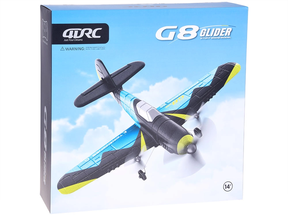Die Funksteuerung auf 2,4 GHz bietet eine zuverlässige Verbindung sowie präzise Steuerung von Schub und Richtung. Der EPP-Schaum dämpft Stöße ausgezeichnet, wodurch der G8 Glider eine hervorragende Wahl für die ersten Schritte im RC-Fliegen und für entspanntes Freizeitfliegen im offenen Gelände ist.