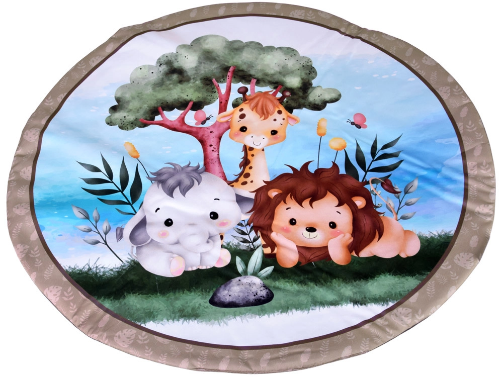 Die weiche, gepolsterte und stabile runde Matte mit Tiermotiven bietet einen gemütlichen Platz zum Spielen und Ausruhen. Geeignet ab Geburt, ideal für die Bauchlage.