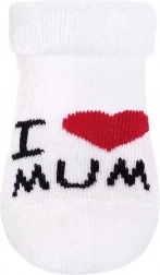 Das elastische Bündchen sorgt dafür, dass die Socken fest sitzen, aber nicht drücken. Das moderne weiße Design mit dem liebevollen Aufdruck I Love Mum and Dad lässt sich leicht mit Kleidung kombinieren und eignet sich wunderbar als Geschenk für Neugeborene.