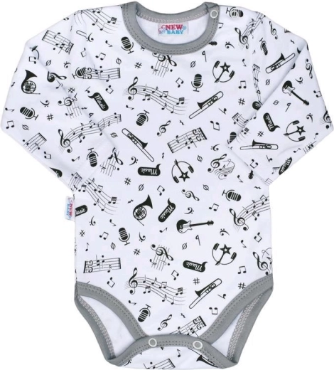 Der stylische Kinderbody NEW BABY Music überzeugt durch sein weiches Material und den verspielten Allover-Print. Dank hochwertiger Baumwolle ist er weich, atmungsaktiv und sanft zur empfindlichen Babyhaut. Praktische Druckknöpfe an der Schulter und im Schritt erleichtern An- und Ausziehen sowie das Wickeln.