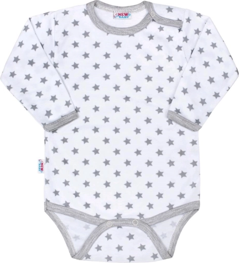 Bequemer und praktischer Baby-Body für den täglichen Gebrauch. Dank der Druckknöpfe an der Schulter und zwischen den Beinchen lässt er sich leicht an- und ausziehen sowie wickeln. Hergestellt aus 100 % Baumwolle, die weich, atmungsaktiv und sanft zur empfindlichen Babyhaut ist. Das stylische graue Design mit Sternchen passt für Mädchen und Jungen.