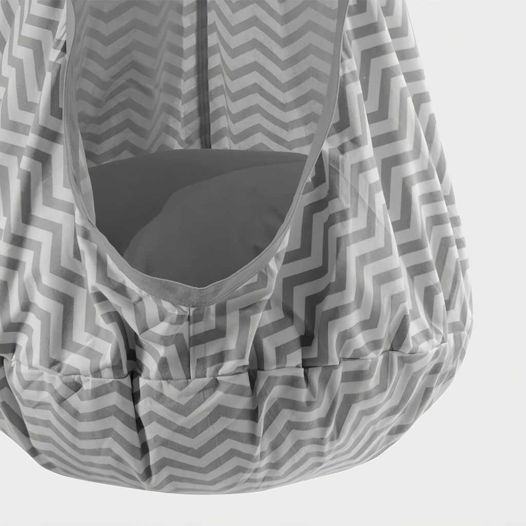 Der Hängesitzsack 2Kids Toys ist ein großartiger Ort, an dem Kinder entspannen, lesen oder sanft schaukeln können. Die natürliche 100% Baumwolle ist angenehm auf der Haut, atmungsaktiv und gleichzeitig ausreichend robust für sicheres Schaukeln. Dank der universellen grauen Farbe fügt er sich problemlos in Kinder- wie auch Wohnzimmer ein.