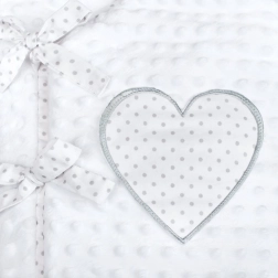 Weiß mit grauen Punkten, Herzapplikation