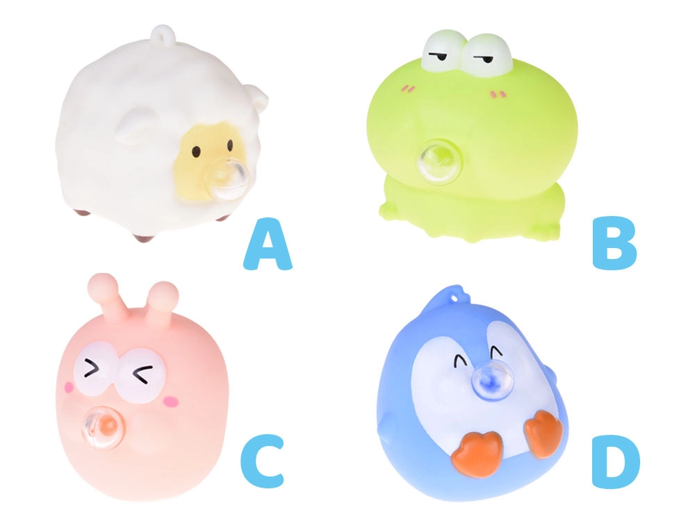 Niedliches Antistress-Spielzeug in Tierform, das beim Drücken einen großen Ballon „aufbläst“ – für sofortige Entspannung und Spaß überall. Dank der kompakten Größe immer griffbereit – in der Tasche, im Rucksack oder auf dem Schreibtisch. Hergestellt aus angenehmem, weichem Gummi und mit einer Öffnung versehen, um es als Anhänger zu verwenden. Antistress-Linderung, sensorische Stimulation und spaßiges Design in einem.