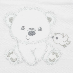 • Design: Stickerei von Bär und Vögelchen, elegante Einfassung, attraktives Muster