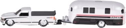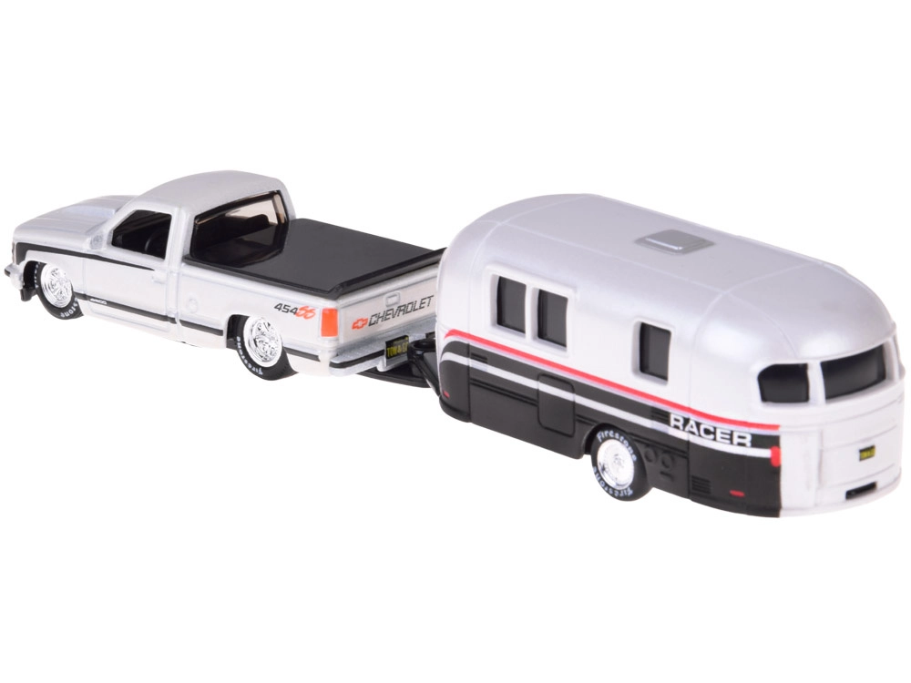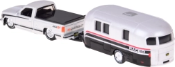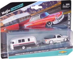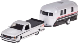 Dieses lizenzierte Set begeistert jeden Fan amerikanischer Klassiker. Das Modell CHEVROLET 454 SS Pick-up (1993) in elegantem Weiß ist mit einem Wohnwagen gekoppelt, der den realistischen Look und die Spielmöglichkeiten zusätzlich unterstreicht. Metallteile und sorgfältige Verarbeitung betonen den Sammlerwert.