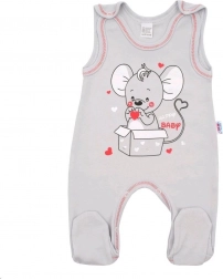 Stylisches Babyset NEW BABY Mouse in Grau, begeistert durch das weiche 100 % Baumwoll-Material und die praktische Alltagstauglichkeit. Das Set umfasst Strampler und Jäckchen mit Druckknopfverschluss für leichtes An- und Ausziehen sowie Wickeln. Das niedliche Maus-Motiv und die farbigen Abschlüsse verleihen dem Set einen charmanten Look, den Kinder und Eltern lieben werden.
