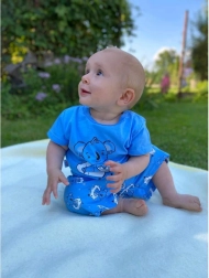 Sie suchen einen bequemen und luftigen Sommerpyjama für Ihr Baby? Der Kinderpyjama New Baby Dream ist aus weicher 100% Baumwolle gefertigt, die angenehm zur empfindlichen Kinderhaut ist und hervorragend atmet. Das T‑Shirt mit kurzen Ärmeln ist mit einem liebevollen Bärenmotiv auf einer Wolke verziert, das Druckknopf‑Verschluss an der Schulter erleichtert das An- und Ausziehen über den Kopf.