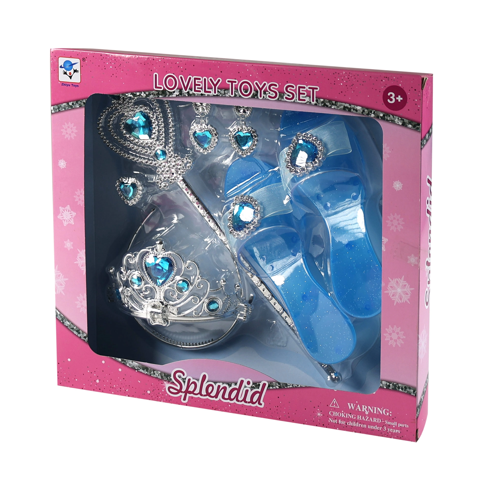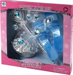 Verwandeln Sie kleine Träume in Realität mit diesem zauberhaften Verkleidungs-Set. Enthalten sind blaue Absatzschühchen, eine silberne Krone, ein Zauberstab, Ohrringe und ein Ring mit blauen Steinchen. Die leichte Kunststoffkonstruktion und glitzernde Details machen dieses Set zur idealen Wahl für Karneval, Feiern und das Spielen zu Hause.