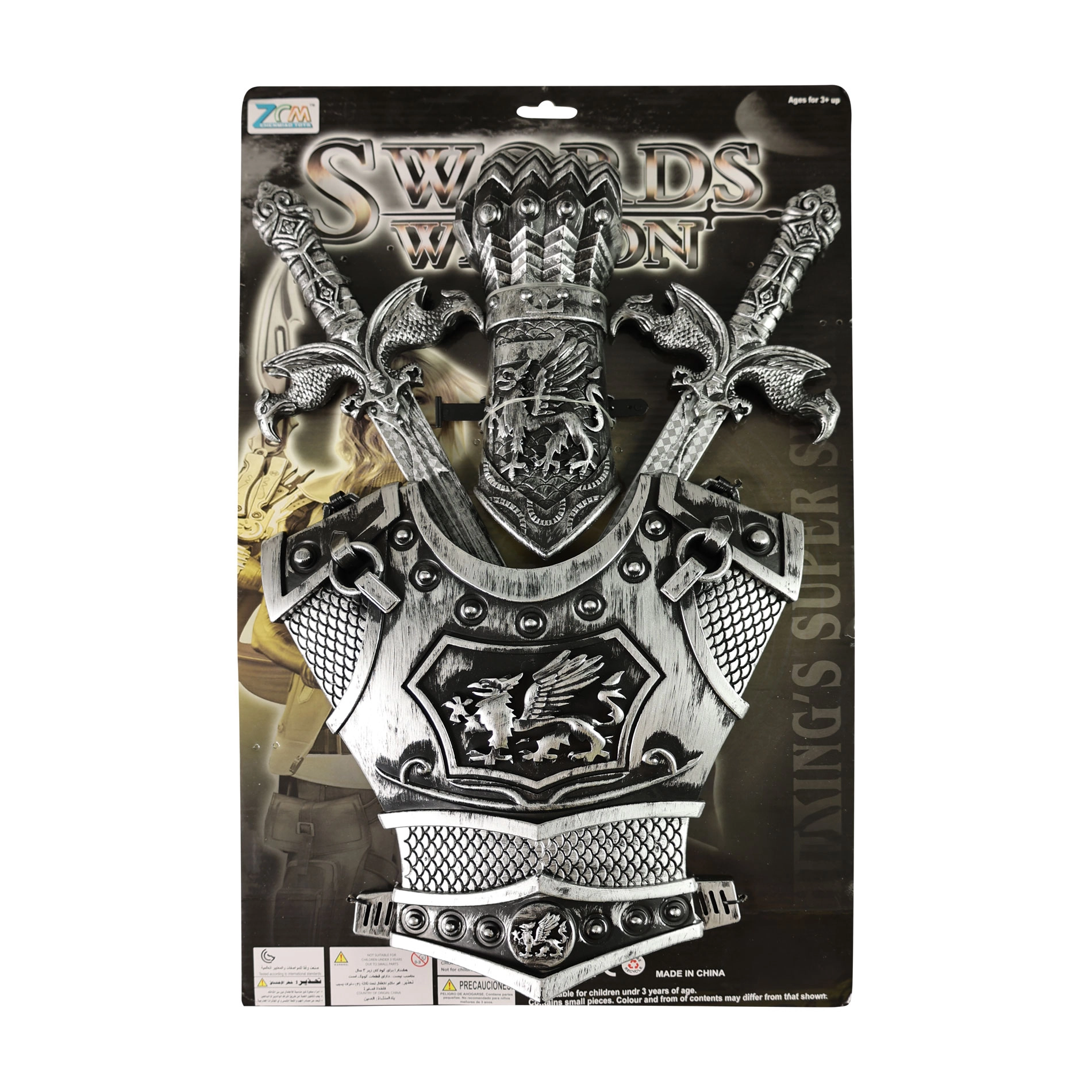 Rittersatz mit silbernen Schwertern für Kinder