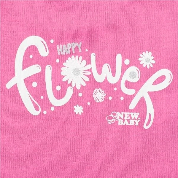 Dieses praktische und stylische Set New Baby Happy Flower ist ideal für den Alltag und gemütliche Stunden zu Hause. Das T‑Shirt ist mit dem dezenten Schriftzug Happy Flower verziert, und die Rüschenärmel sorgen für einen verspielten, mädchenhaften Look. Der bequeme Druckknopfverschluss am Halsausschnitt auf der Rückseite erleichtert das An- und Ausziehen.