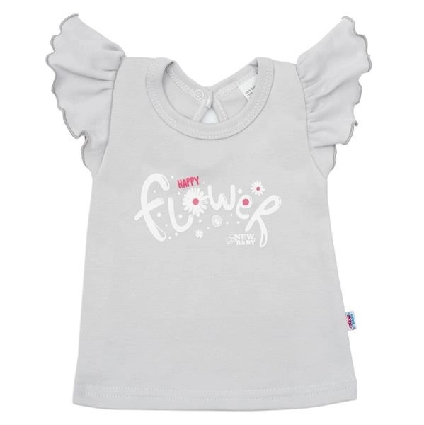 Dieses zweiteilige Set New Baby Happy Flower ist die ideale Wahl für den Alltag oder als Geschenk zur Geburt. Das T-Shirt mit dem zarten Schriftzug Happy flower besticht durch Rüschenärmel, die das gewisse Etwas verleihen, und einen Druckknopfverschluss hinten am Hals für einfaches Umziehen. Die Hose hat einen breiteren, bequemen Bund, ist an den Knöcheln mit Bündchen schmal zulaufend und ist mit einem Blumenmuster verziert.
