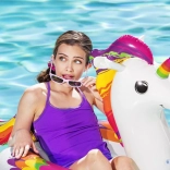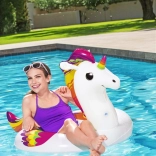 Genießen Sie Sommerspaß mit dem auffälligen und verspielten Einhorn-Schwimmring, der hervorragend auf dem Wasser liegt, guten Halt bietet und unübersehbar strahlt. Dank des widerstandsfähigen, getesteten Vinyls ist er ideal für täglichen Wasserspaß und entspanntes Chillen.