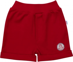 Gestreiftes T-Shirt mit Boots-Applikation und rote Shorts bilden ein stylisches Set für kleine Matrosen.