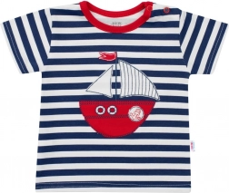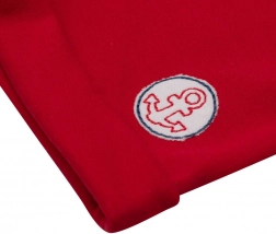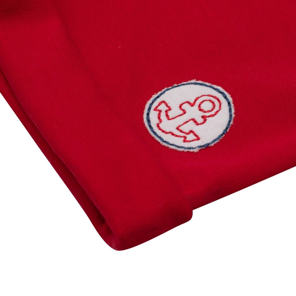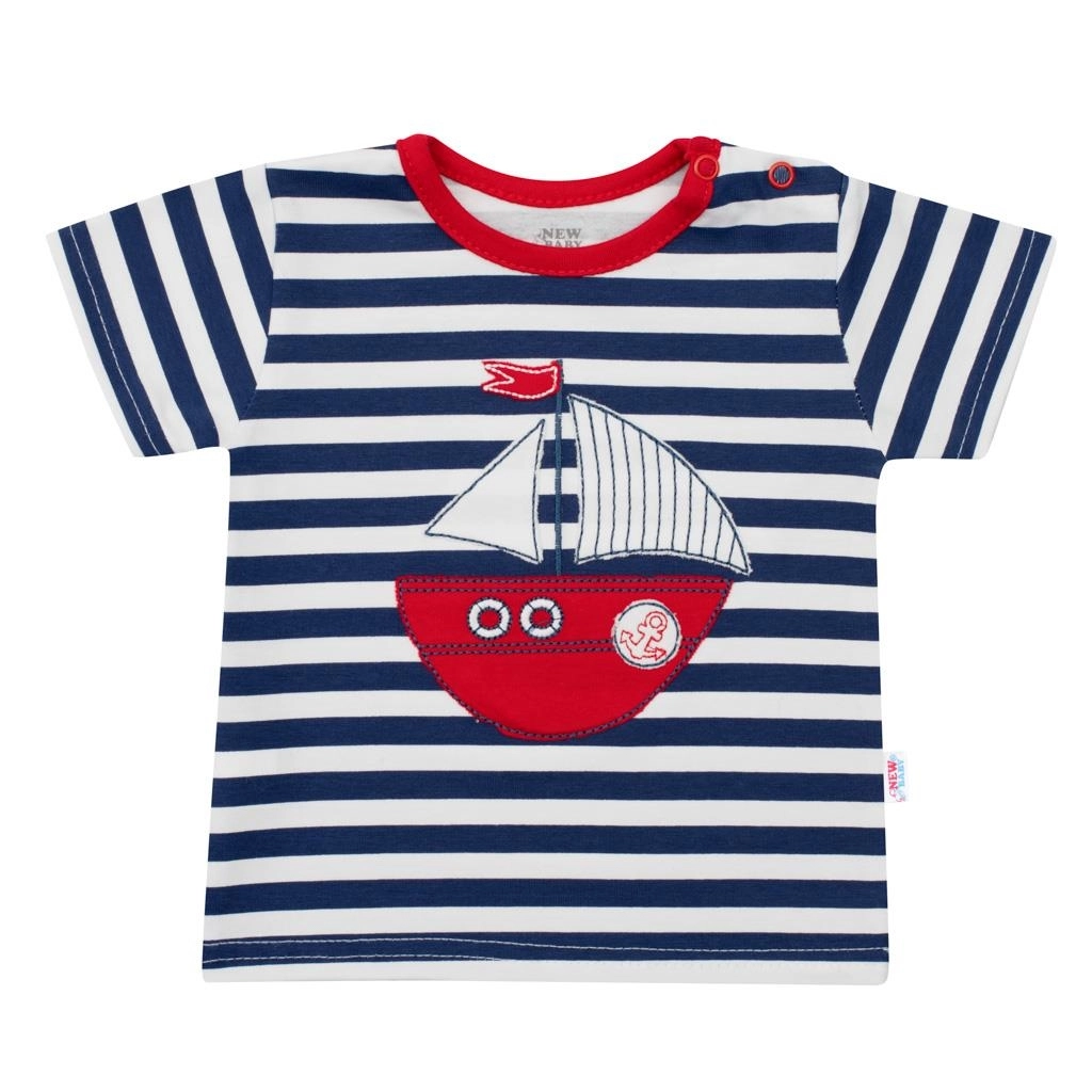 Suchen Sie ein leichtes und angenehmes Set für warme Tage? Die maritime Kollektion NEW BABY Marine bietet einen verspielten Look und maximalen Komfort. Das Kurzarm-T‑Shirt ist mit modernen Streifen und einem hübschen Boot‑Patch verziert, der auf der Innenseite mit Stoff hinterlegt ist, um Kratzen zu vermeiden. Die unifarbenen Shorts mit dezentem Anker-Motiv lassen sich leicht kombinieren und sitzen hervorragend.
