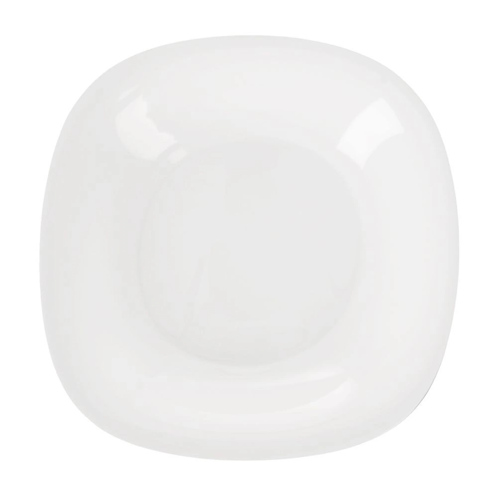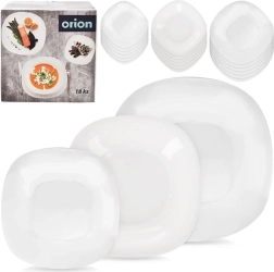 Elegantes Tafelservice für 6 Personen aus strapazierfähigem Opalglas in Weiß. Enthält Dessert-, Flach- und Suppenteller in modernem quadratischem Design mit abgerundeten Kanten. Das Set ist spülmaschinengeeignet und mikrowellengeeignet, bietet vielseitige Verwendung für Frühstück, Mittag- und Abendessen und hält dank Hitzebeständigkeit bis +100 °C viele Jahre.