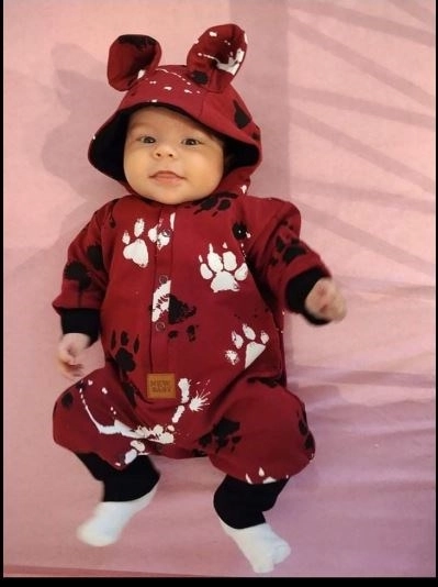 Die Kapuze mit niedlichen Öhrchen verleiht dem Overall einen verspielten Look, und die breiteren, elastischen Bündchen an Ärmeln und Hosenbeinen helfen, die Wärme zu halten. Der Overall eignet sich perfekt für die Übergangszeit – für Frühling und Herbst.