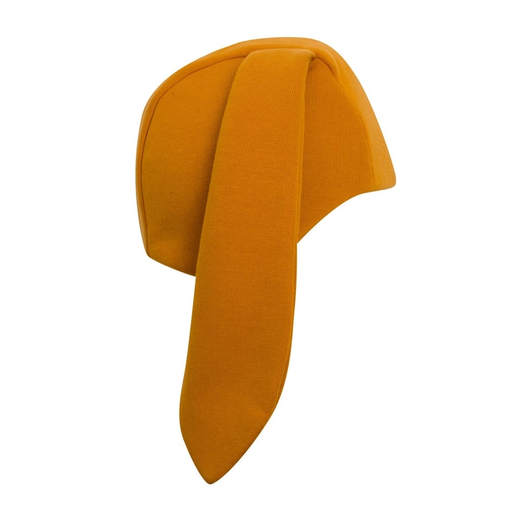 Die praktische Bindung unter dem Kinn verhindert das Verrutschen, während die sorgfältige Form über den Ohren und das Vollfutter aus Baumwolle Wärme und Komfort an kühleren Tagen gewährleisten.