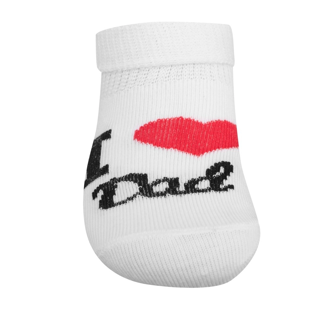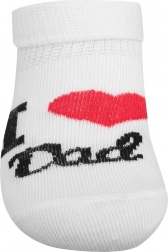 Die leichten Baumwollsocken von New Baby für Neugeborene sorgen dank hochwertigem Material mit hohem Baumwollanteil für angenehmes Tragen. Das elastische Bündchen hält die Socken sicher, ohne den empfindlichen Babyfuß einzuengen. Das fröhliche Motiv I Love Mum and Dad und das reine Weiß passen zu jedem Outfit.