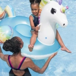 Integrierte Griffe am Hals des Einhorns ermöglichen Kindern einen sicheren Halt und einfaches Manövrieren, selbst bei lebhafterem Wasser.
