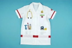 Der Kinder-Arztkittel KLEIN regt die Fantasie an und fördert soziale Fähigkeiten beim Doktorspiel. Leichter und bequemer Schnitt mit Kragen, kurzen Ärmeln und Klettverschluss ermöglicht einfaches An- und Ausziehen. Bunte Instrumentenaufdrucke sorgen für Authentizität und Spielspaß.