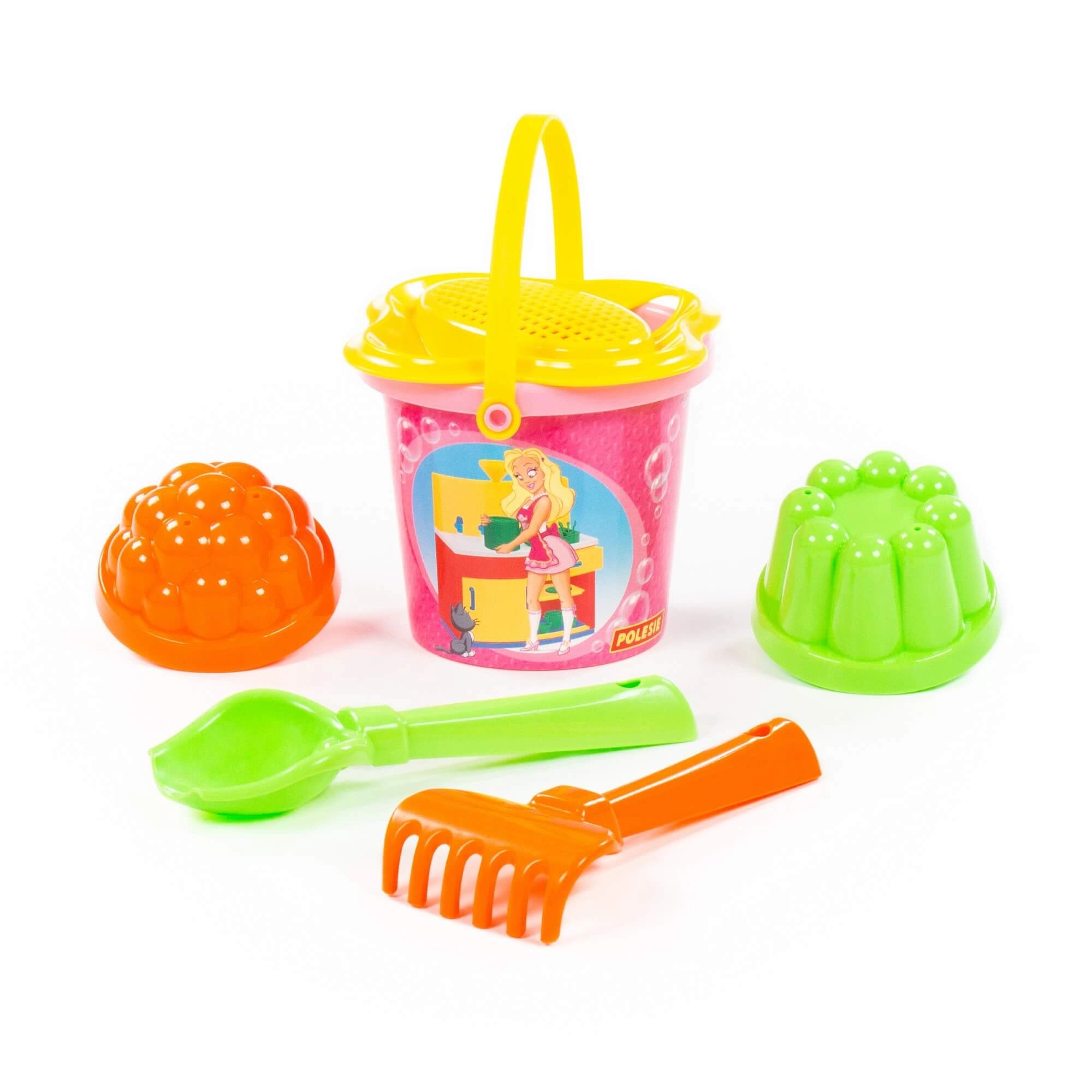 Das Kindersandspiel-Set Funny bietet Kindern stundenlangen Spaß beim Bauen von Sandkuchen, Burgen und weiteren Sandkreationen. Das Set ist für kleine Kinderhände konzipiert, leicht, einfach zu greifen und aus robusten Materialien gefertigt. Dank der leuchtenden Farben und märchenhaften Bilder werden Kinder zu Kreativität und Spielen an der frischen Luft motiviert.