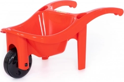Die Schubkarre besteht aus hochwertigem, stabilem Kunststoff, der den Bedingungen im Freien standhält und dennoch leicht für kleine Helfer bleibt.