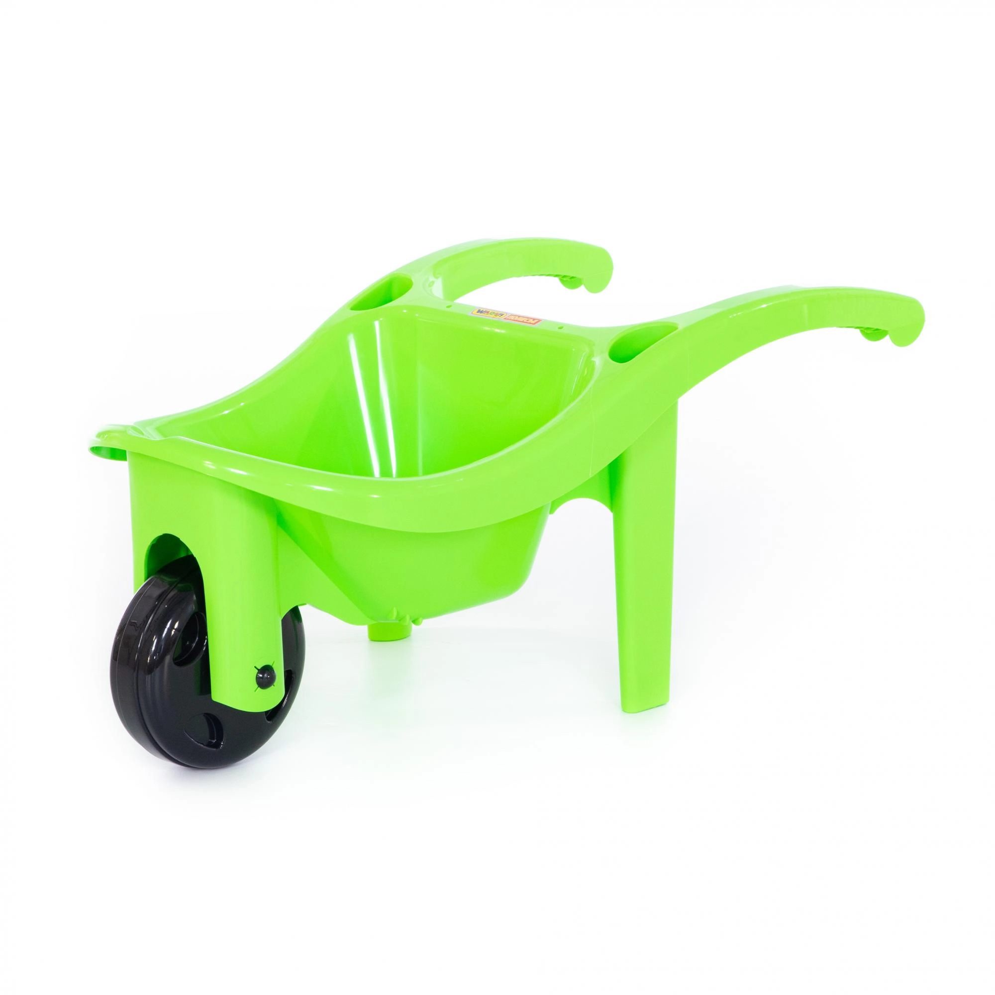 Die Kinder-Schubkarre Wader bringt Kindern Freude an aktiver Bewegung an der frischen Luft. Dank der leichten Kunststoffmulde und dem vorderen Einzelrad können Kinder sie leicht schieben und Sand, Spielzeug oder kleines Gartenmaterial transportieren. Stabile Griffe mit sicherem Halt fördern Motorik und Selbstständigkeit.