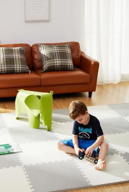 Die Puzzleteile lassen sich miteinander verbinden und die Spielfläche durch Zukauf weiterer Sets desselben Modells erweitern. Randleisten sorgen für einen sauberen Abschluss und bessere Stabilität. Der neutrale Grauton wirkt im Kinderzimmer wie im Wohnzimmer ruhig und ästhetisch. Die Matte ist frei von Phthalaten, Formamid, BPA und PVC, erfüllt EN 71 sowie die Anforderungen von REACH und ist mit CE gekennzeichnet.