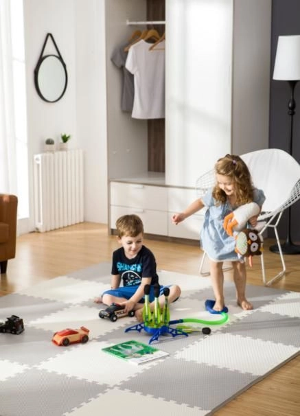 Schaffen Sie für Kinder einen sicheren und komfortablen Spielbereich. Der starke EVA-Schaum dämpft Stöße, schützt vor Kälte und dank der rutschhemmenden Oberfläche unterstützt er sichere erste Krabbel- und Gehversuche. Das wasserdichte Material lässt sich einfach mit einem feuchten Tuch abwischen – die Matte ist hygienisch und nimmt weder Staub noch Milben auf.