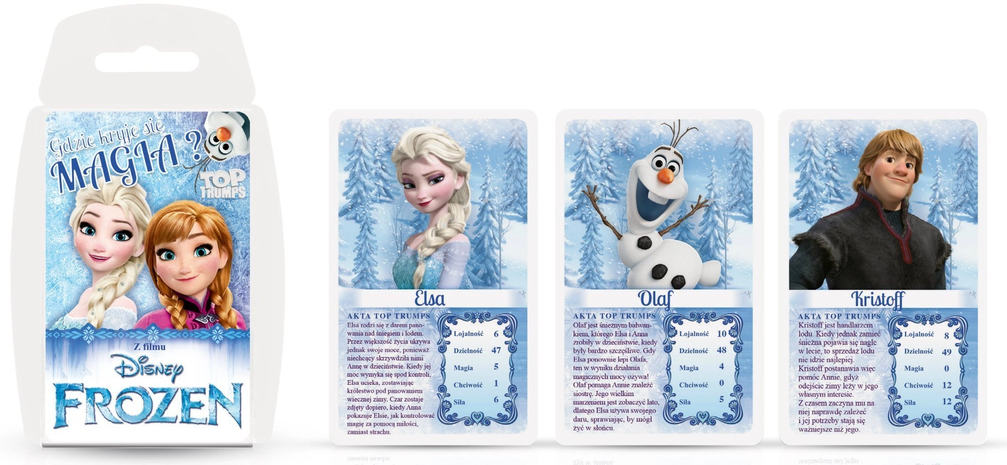 Top Trumps ist ein beliebtes Kartenspiel, das Familien seit Jahrzehnten begeistert. In der Edition Die Eiskönigin treffen Sie auf die Helden des beliebten DISNEY-Films und vergleichen ihre Eigenschaften wie Magie, Mut und Weisheit. Ziel ist es, den besseren Wert zu wählen und die Karten der Gegner zu gewinnen – es siegt, wer den gesamten Stapel sammelt.
