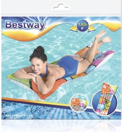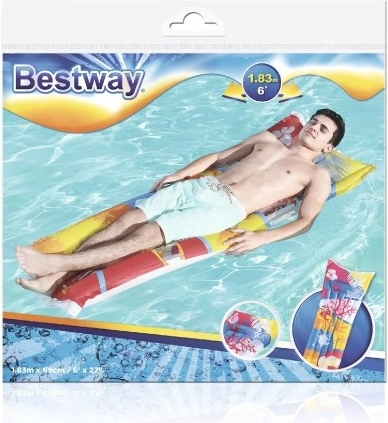 Genießen Sie Entspannung auf dem Wasser mit dieser aufblasbaren Matratze von Bestway. Hergestellt aus strapazierfähigem Vinylmaterial und ausgestattet mit einem profilierten Kissen für maximalen Komfort.