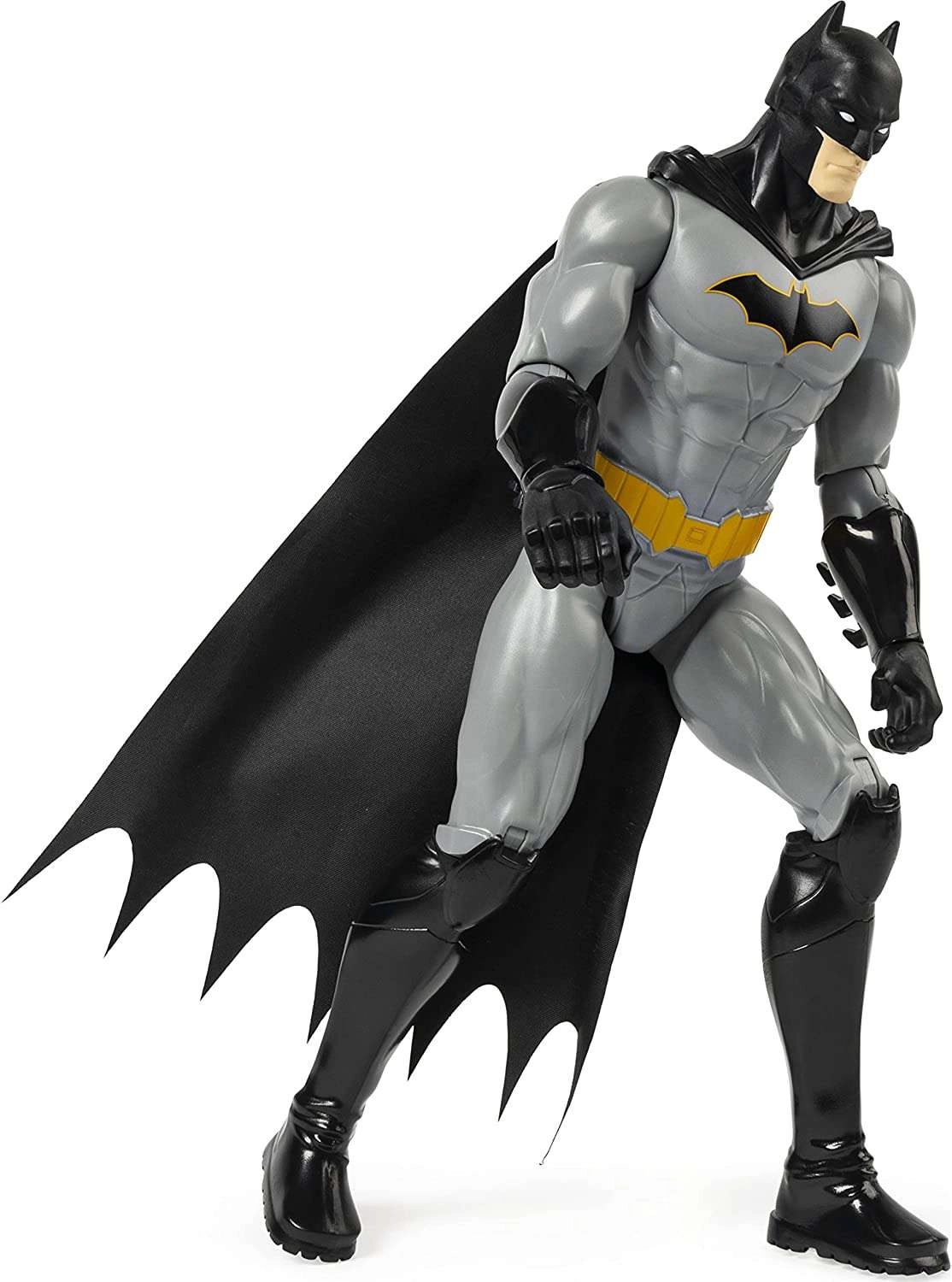 Diese detailreich gestaltete BATMAN-Figur im 30‑cm‑Maßstab bringt den ikonischen Look des Rächers aus GOTHAM in grau‑schwarzer Kombination mit gelbem Nutzgürtel und markantem Fledermauslogo. Die Kapuze aus Stoff weht eindrucksvoll bei jeder Bewegung und verleiht Actionszenen zusätzliche Dramatik.