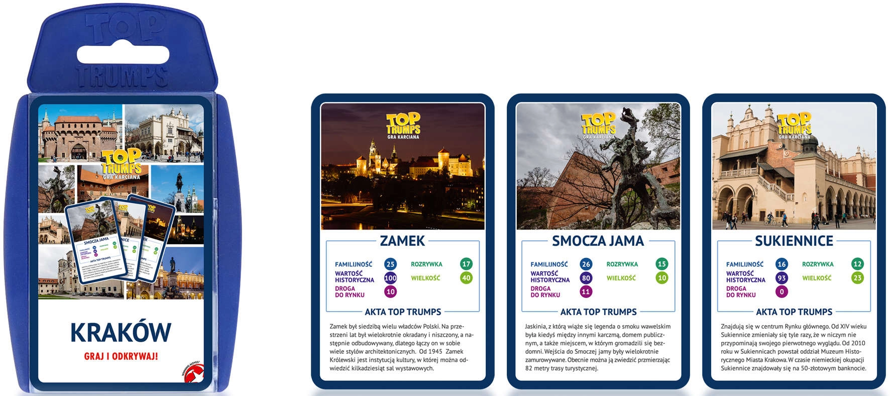 Entdecken Sie das schnelle und unterhaltsame Kartenspiel TOP TRUMPS Krakau, ideal für unterwegs und zu Hause. Einfache Regeln, spannende Wertevergleiche und 33 Karten in einem praktischen Etui garantieren Spaß für Kinder und Erwachsene. Eine großartige Wahl für mindestens 2 Spieler, ab 6 Jahren und mit einer Spieldauer von etwa 15 Minuten.