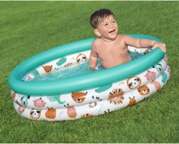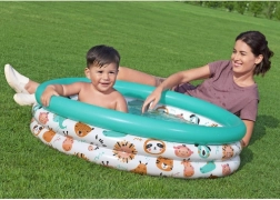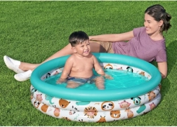 Das leichte und sichere aufblasbare BESTWAY-Becken ist ideal, um die Kleinsten an heißen Tagen im Garten oder im Urlaub abzukühlen. Dank der drei Luftkammern, dem robusten PVC und den Rückschlagventilen bietet es Stabilität, Komfort und einfache Pflege. Der fröhliche Tierdruck begeistert Kinder und motiviert zum spielerischen Planschen im Wasser.