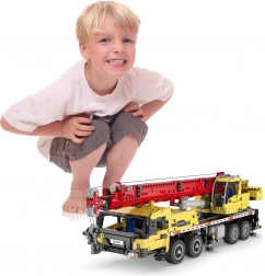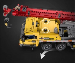 Dieses Technikmodell aus der Edition Make Your Bricks Move begeistert jeden Fan von Baumaschinen. Das gelbe Fahrgestell mit mehreren Achsen, die realistische Kabine und der lange rote Teleskopausleger mit Winde bieten ein authentisches Bau- und Spielerlebnis. Dank 360° drehbarem Oberwagen bewegen Sie die Last mühelos genau dorthin, wo sie gebraucht wird.
