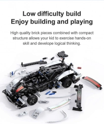 Der CaDA Z-Wind Bausatz verbindet Bauspaß mit der Dynamik eines ferngesteuerten Modells. Die präzise gefertigte Karosserie in Weiß mit schwarzen Akzenten, funktionale LED-Lichter und eine sanfte Fahrt mit bis zu 5,5 km/h machen diesen Rennwagen zu einem beeindruckenden Stück zum Spielen und Ausstellen.