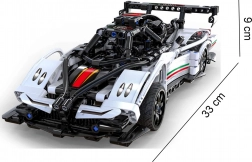 Die aerodynamische weiße Karosserie mit detaillierter Verarbeitung, großem Heckflügel und funktionalen LED-Lichtern verleiht dem Modell den authentischen Look eines Supersportwagens.