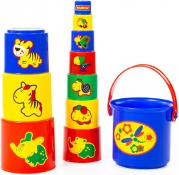 Diese große Stapelpyramide mit Tiermotiven ist das ideale Spielzeug für Kinder, die gerne bauen und entdecken. Die einzelnen Becher mit Tierbildern lassen sich leicht ineinanderstecken und ermöglichen das Bauen eines Turms von bis zu 73 cm Höhe. Beim Spielen trainieren Kinder ihre Koordinationsfähigkeiten, Feinmotorik und logisches Denken.