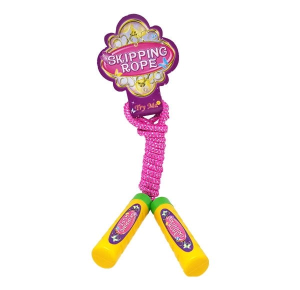 Leichtes und robustes Kinderspringseil mit Baumwollgeflecht, verziert mit Silberfaden, und bequemen Kunststoffgriffen. Ideal für tägliche Bewegung und Spiel auf dem Spielplatz und zu Hause. Fördert die Koordinationsfähigkeiten, die Cardio-Fitness und spaßige Bewegung für Kinder ab 5 Jahren. Erhältlich in lebhaften Farben, Preis gilt pro 1 Stück.