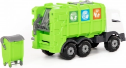 Das Fahrzeug hat keinen Antrieb und funktioniert rein mechanisch – Kinder können selbst das Anheben und Entleeren des Behälters, das Öffnen des oberen Deckels und das Kippen der gesamten Ladefläche steuern. Dank der robusten Ausführung eignet es sich auch für das Spielen in Gruppen im Kindergarten.
